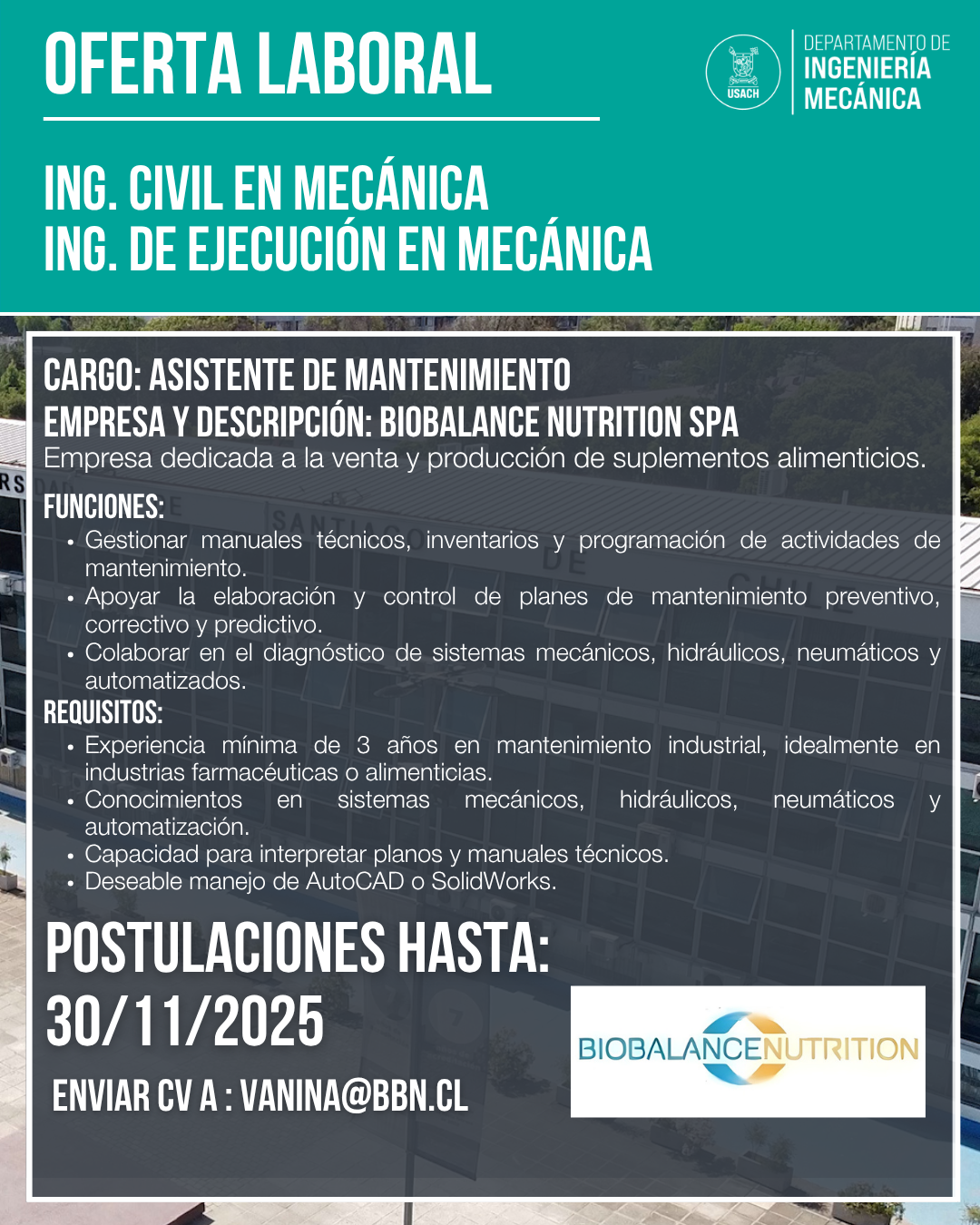 Oferta Laboral: Biobalance Nutrition SPA