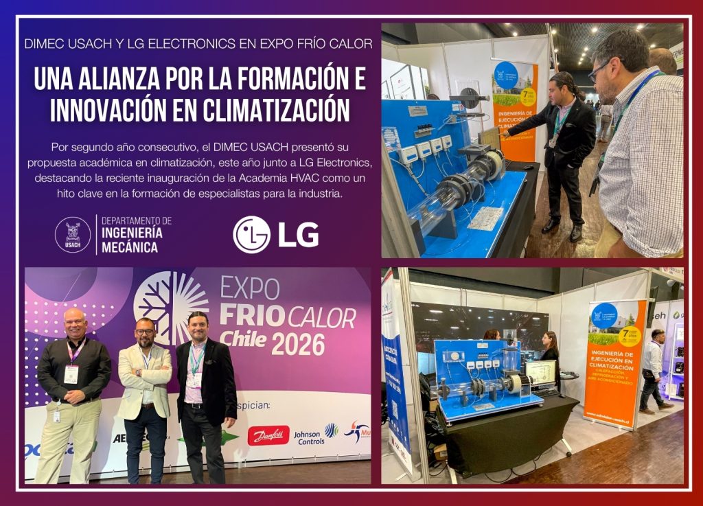Por segundo año consecutivo, el Departamento de Ingeniería Mecánica de la Universidad de Santiago de Chile (DIMEC USACH) participó en la Expo Frío Calor Chile, consolidando su presencia en el principal encuentro nacional de la industria HVACR y fortaleciendo su vínculo con actores estratégicos del sector.