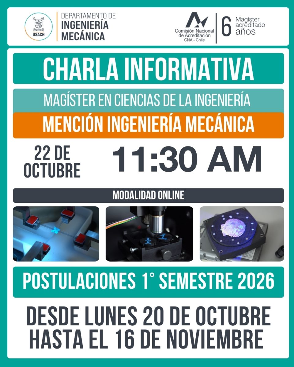 El Departamento de Ingeniería Mecánica de la Universidad de Santiago de Chile invita a estudiantes y profesionales del área a participar en la charla informativa del Magíster […]