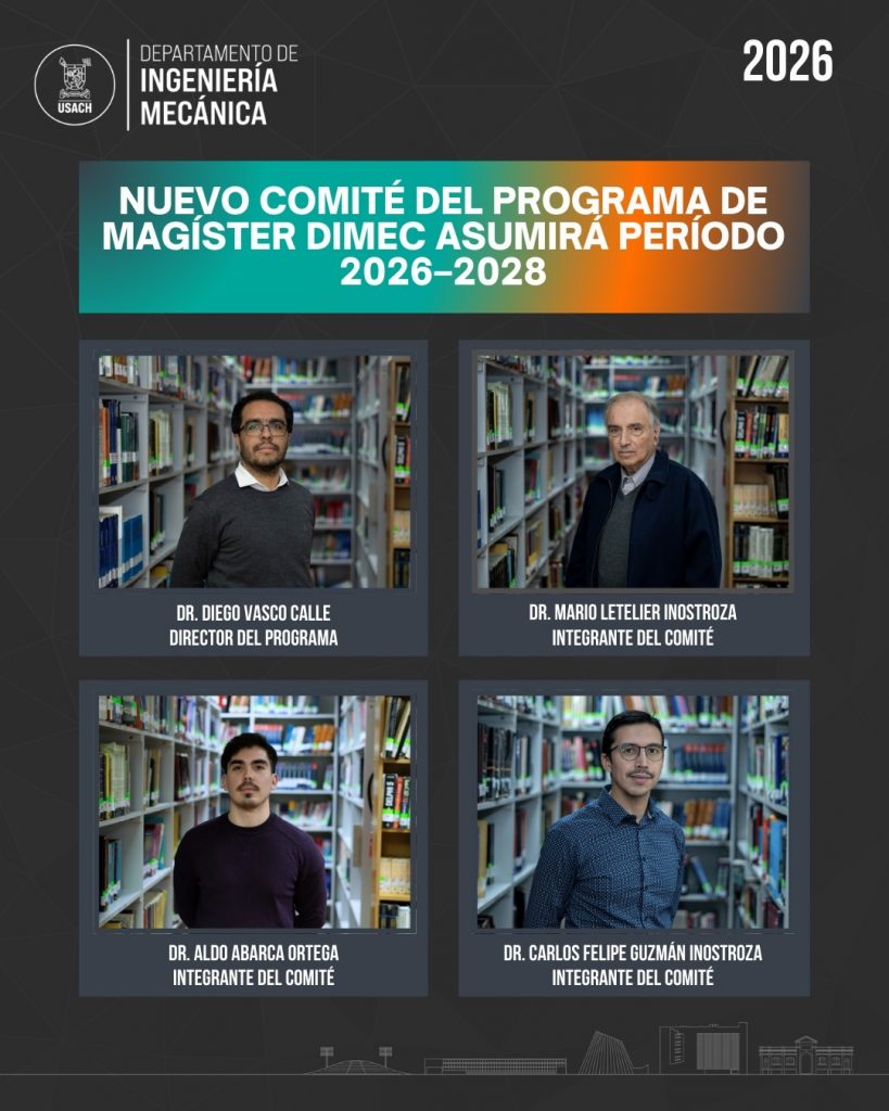 El Departamento de Ingeniería Mecánica (DIMEC) de la Universidad de Santiago de Chile informa a su comunidad que ha sido electo el nuevo Comité del Programa de Magíster (CPM), el cual ejercerá sus funciones durante el período 2026–2028.